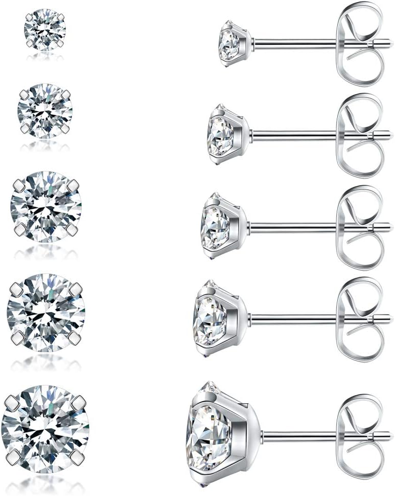 Introducing our 5 Pairs Stud Earrings Set, perfect for adding a touch of elegance to any outfit. Made with hypoallergenic 316L stainless steel, these earrings are suitable for even the most sensitive ears. The sparkling cubic zirconia stones range in size from 3mm to 8mm, providing a variety of options to suit your style. The classic steel color complements any look, making these earrings versatile for everyday wear or special occasions. Treat yourself or gift them to a loved one for a timeless accessory that will never go out of style.