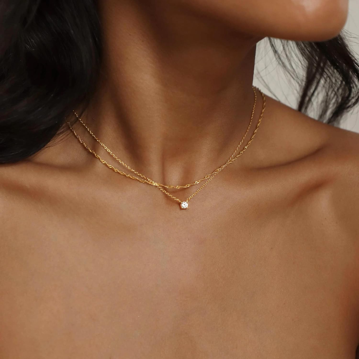 Introducing our stunning Diamond Necklaces for Women, the perfect accessory to elevate any outfit. Made with high-quality materials such as 14k gold or sterling silver, these dainty choker necklaces are designed to be both elegant and trendy. The simple gold plated design is accented with sparkling CZ diamonds, adding a touch of glamour to any look.