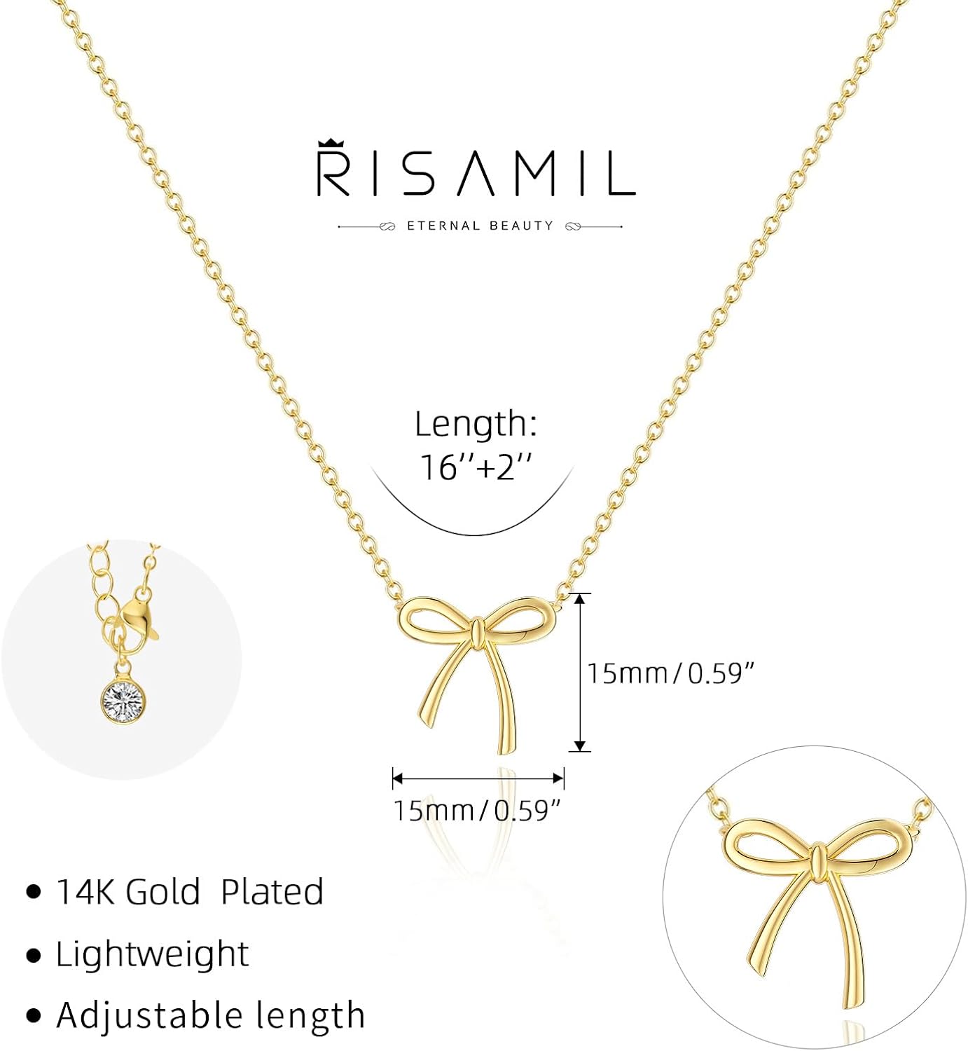 Treat yourself or a loved one to this gorgeous Gold Bow Necklace and add a touch of sophistication and glamour to your jewelry collection. Order yours today and shine bright like a diamond!